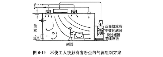 圖6-19是使操作工人盡量不接觸有害粉塵的氣流組織處理方法。